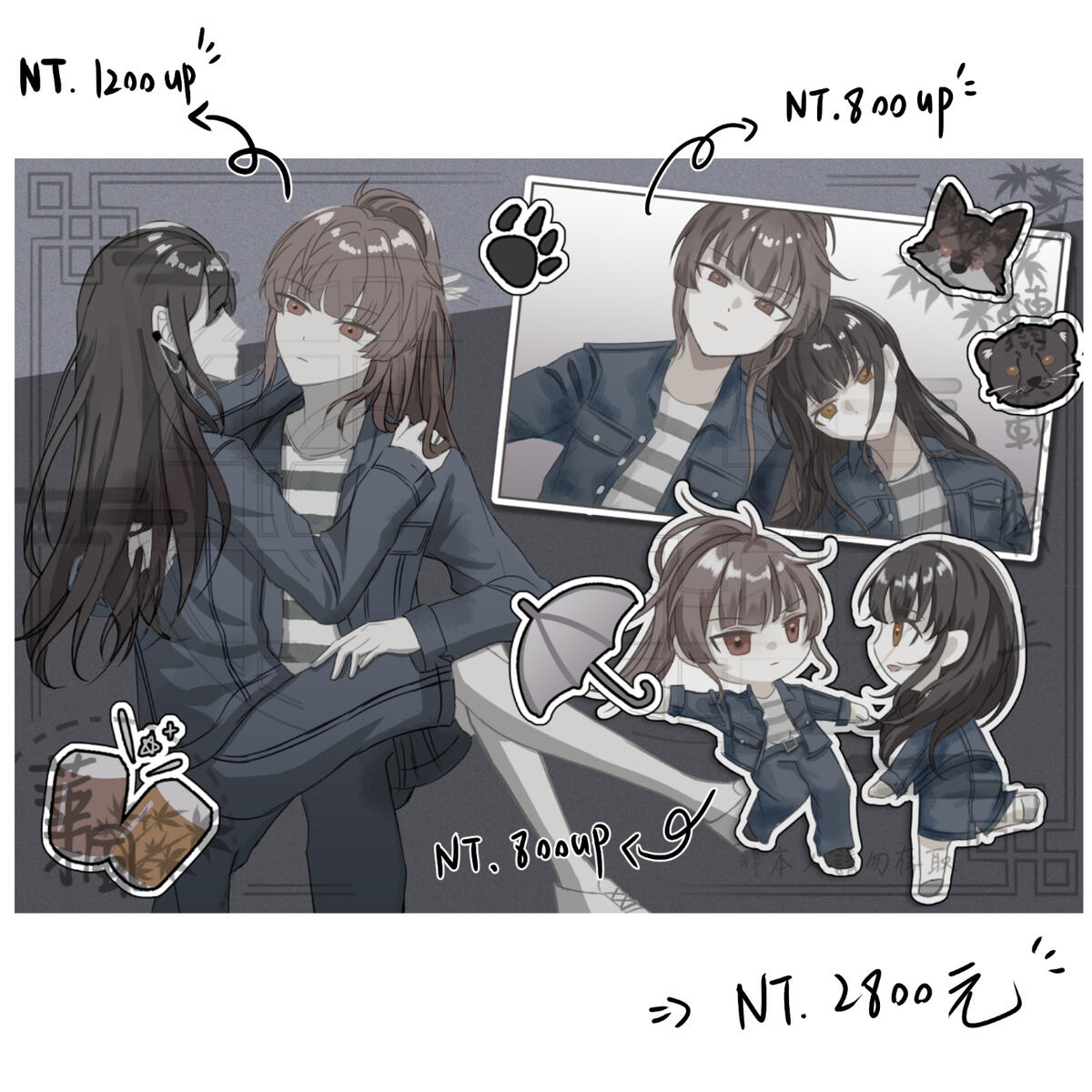 信任我的話,立繪、Q版、雙人互動等客製化項目可自帶參考圖與價格詢問~但無法保證品質請自行斟酌。